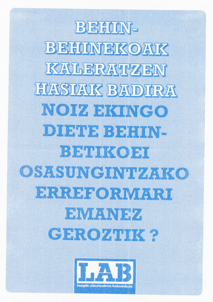Título: Behin-behinekoak kaleratzen hasiak badira [Material gráfico] : noiz egingo diete behin-betikoei osasungintzako erreformari emanez geroztik...