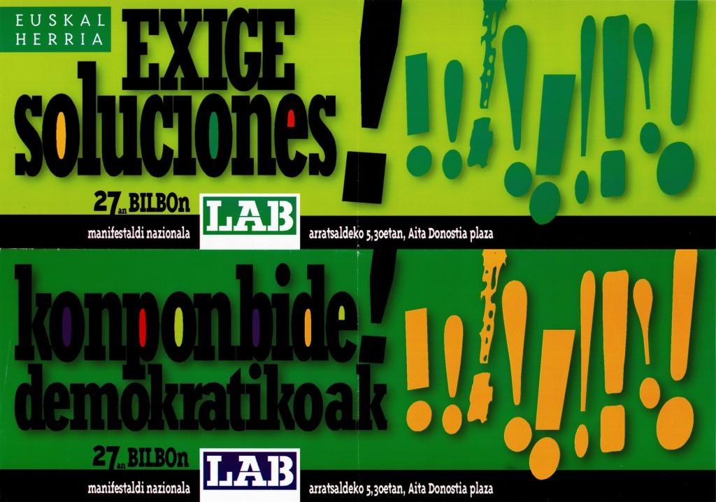 Título: Exige soluciones! [Material gráfico] : konponbide demokratikoak! : 27an Bilbon...