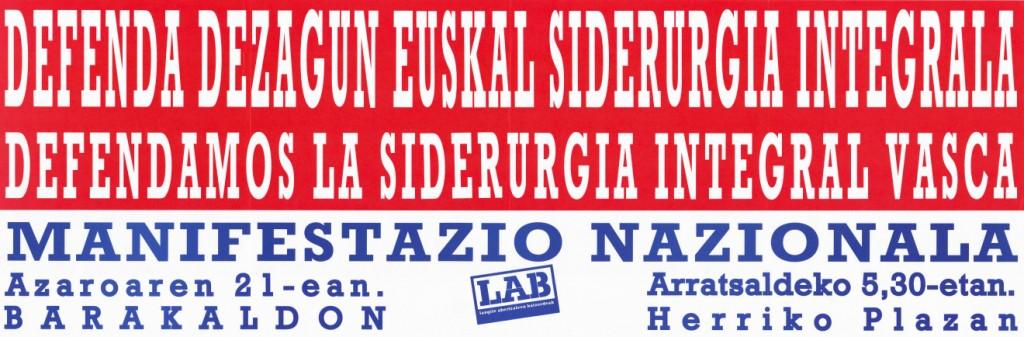 Título: Defenda dezagun euskal siderurgia integrala [Material gráfico] : manifestazio nazionala... = Defendamos la siderurgia integral vasca