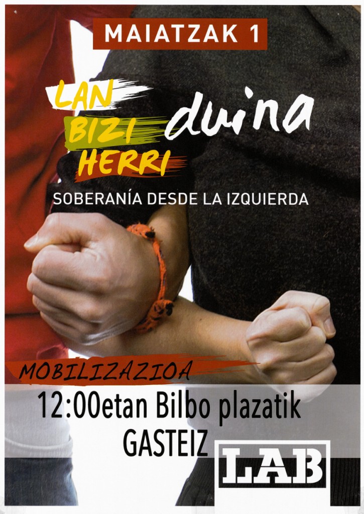 Título: Maiatzak 1 [Material gráfico] : lan, bizi, herri duina : mobilizazioa 12:00 etan Bilbo Plazatik Gasteiz : soberania desde la izquierda : LAB
