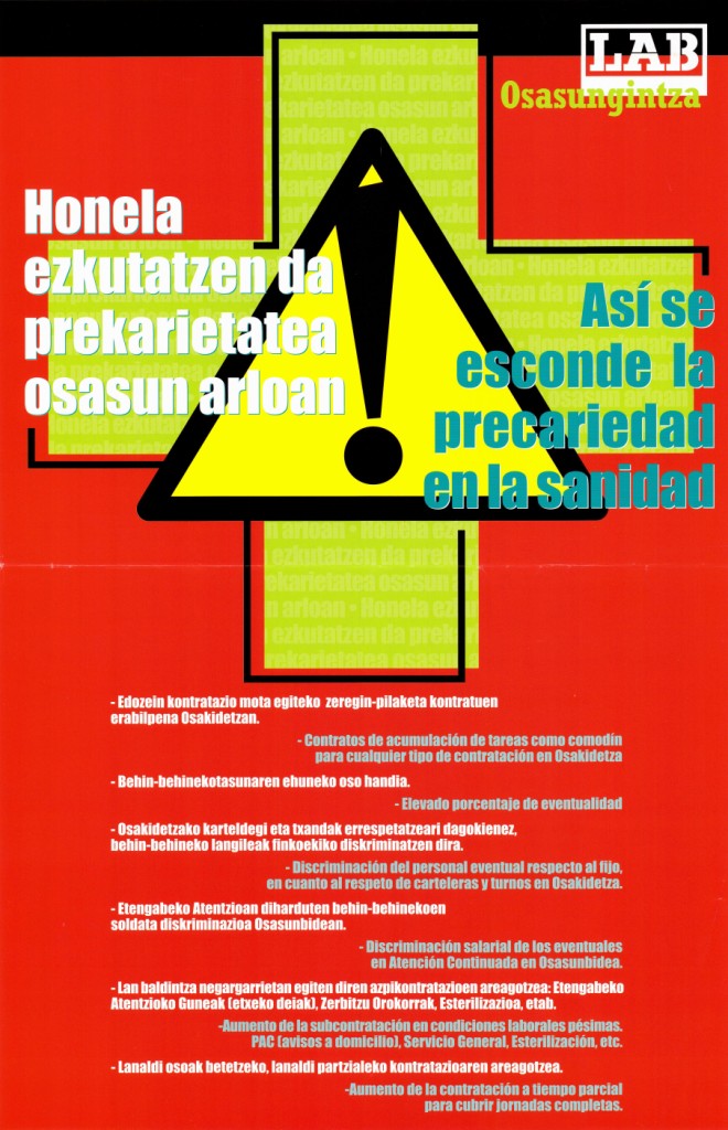 Título: Honela ezkutatzen da prekarietatea osasun arloan [Material gráfico] = Así se esconde la precariedad en la sanidad...