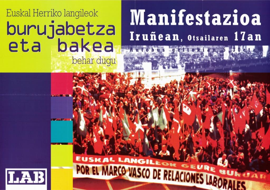 Título: Euskal Herriko langileok [Material gráfico] : burujabetza eta bakea behar dugu : manifestazioa Iruñean, otsailaren 17an...