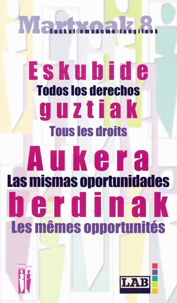 Título: Eskubide guztiak [Material gráfico] : aukera berdinak = Todos los derechos : las mismas oportunidades = Tous les droits : les mêmes opportunités : martxoak 8 : euskal emakume langileok
