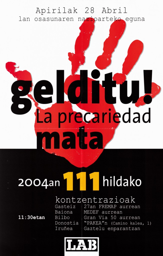Título: Apirilak 28 [Material gráfico] : lan osasunaren nazioarteko eguna : gelditu! : la precariedad mata