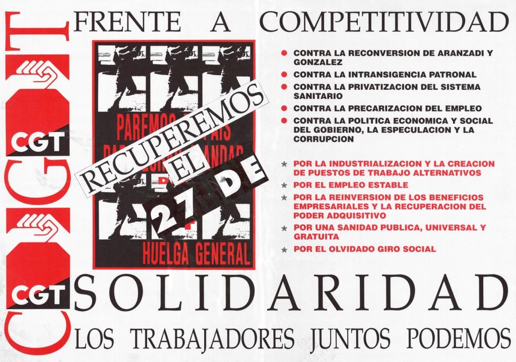 Título: Frente a competitividad [Material gráfico] : solidaridad, los trabajadores juntos podemos, recuperemos el 27 DE : huelga general...