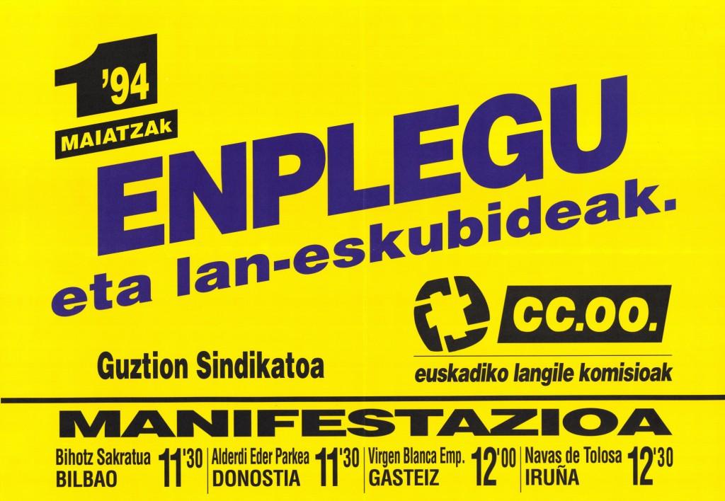 Izenburua: Enplegu eta lan-eskubideak [Material gráfico] : 94 maitzak 1 : manifestazioa...