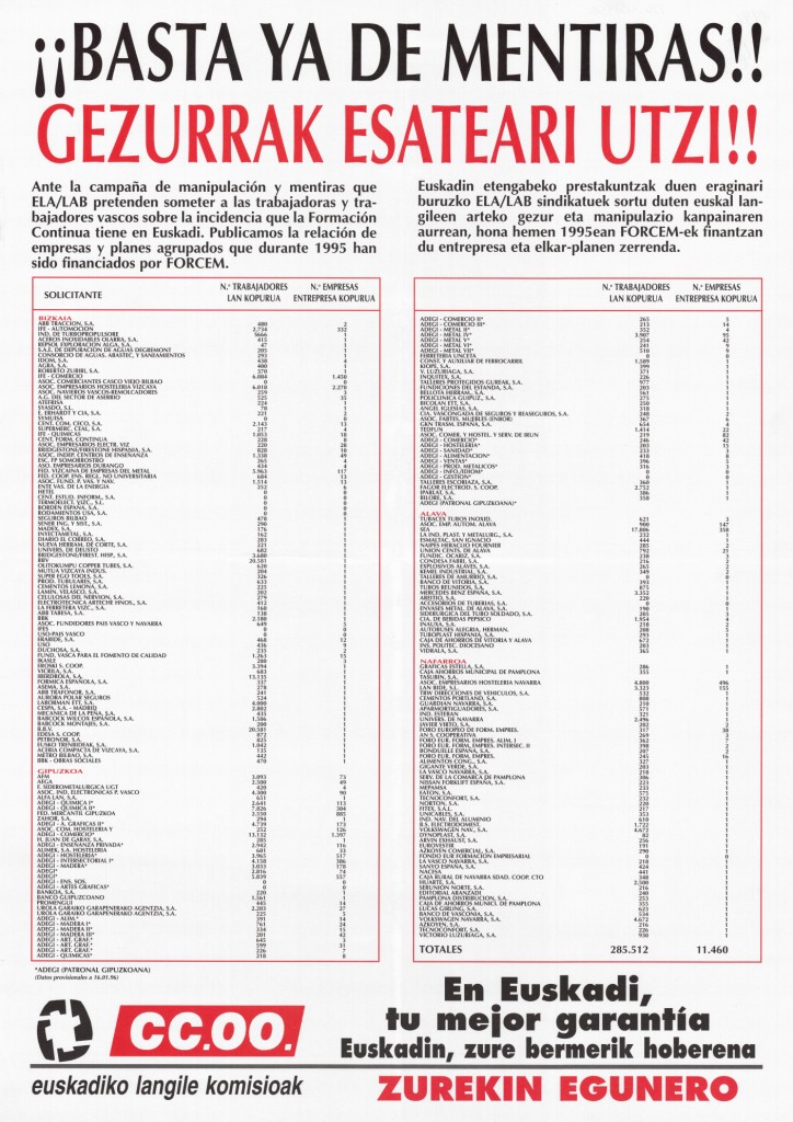 Título: ¡¡Basta ya de mentiras!! [Material gráfico] : CC.OO. en Euskadi, tu mejor garantia = Gezurrak esateari utzi!! : CC.OO. Euskadin, zure bermerik hoberena : zurekin egunero