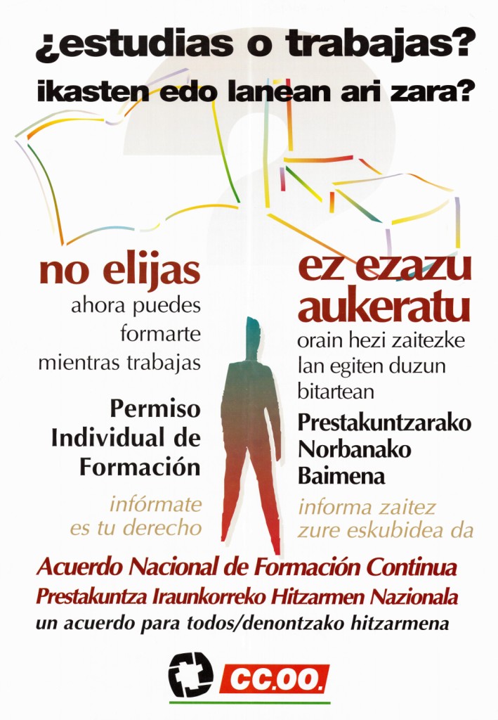 | Título: | ¿Estudias o trabajas... [Material gráfico] : no elijas : permiso individual de formación : acuerdo nacional de formación continua = Ikasten edo lanean ari zara... : ez ezazu aukeratu : = prestakuntzarako norbanako baimena : prestakuntza iraunkorreko hitzarmen nazionala... |