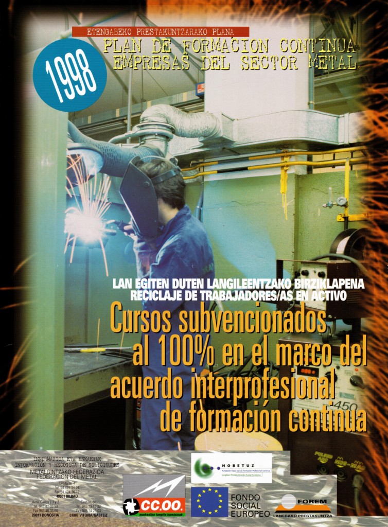 Título: Cursos subvencionados al 100% en el marco del acuerdo interprofesioneal de formación continua [Material gráfico] : plan de formación continua empresas sector del metal 1998...