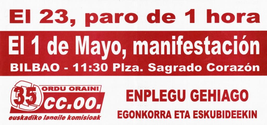 Izenburua: El 23 paro de 1 hora, el 1 de mayo manifestación [Material gráfico] : enplegu gehiago...