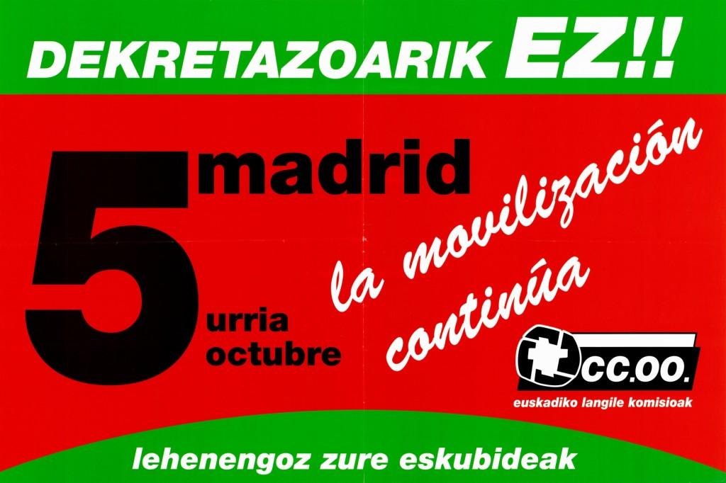 Título: Dekretazoarik ez !! [Material gráfico] : 5 urria = 5 octubre, Madrid : la movilización continua : lehenengoz zure eskubideak