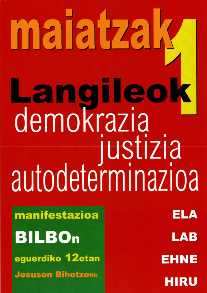Título: Maiatzak 1 [Material gráfico] : langileok demokrazia justizia autodeterminazioa : manifestazioa...