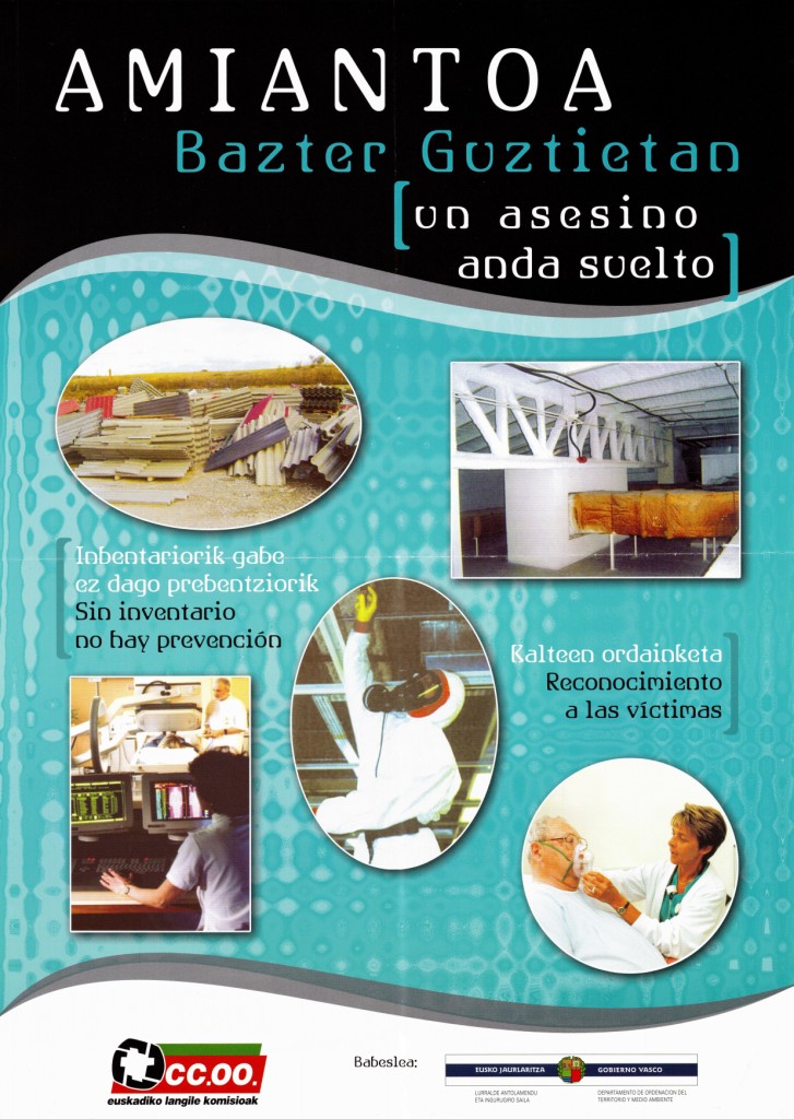 Izenburua: Amiantoa bazter guztietan [Material gráfico] : un asesino anda suelto : sin inventario no hay prevención : reconocimiento a las víctimas