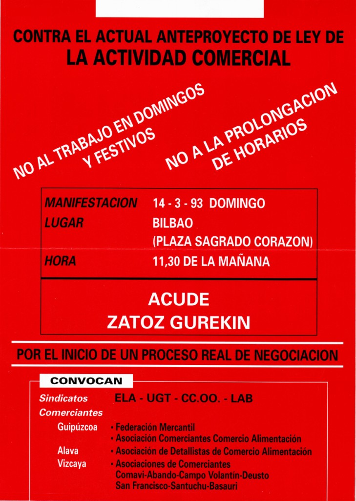 | Resumen: | En el cartel también figuran UGT, CC.OO., LAB, Federación mercantil, Asociación Comerciantes Comercio Alimentación En el cartel también figuran UGT, CC.OO., LAB, Federación mercantil, Asociación Comerciantes Comercio Alimentación |