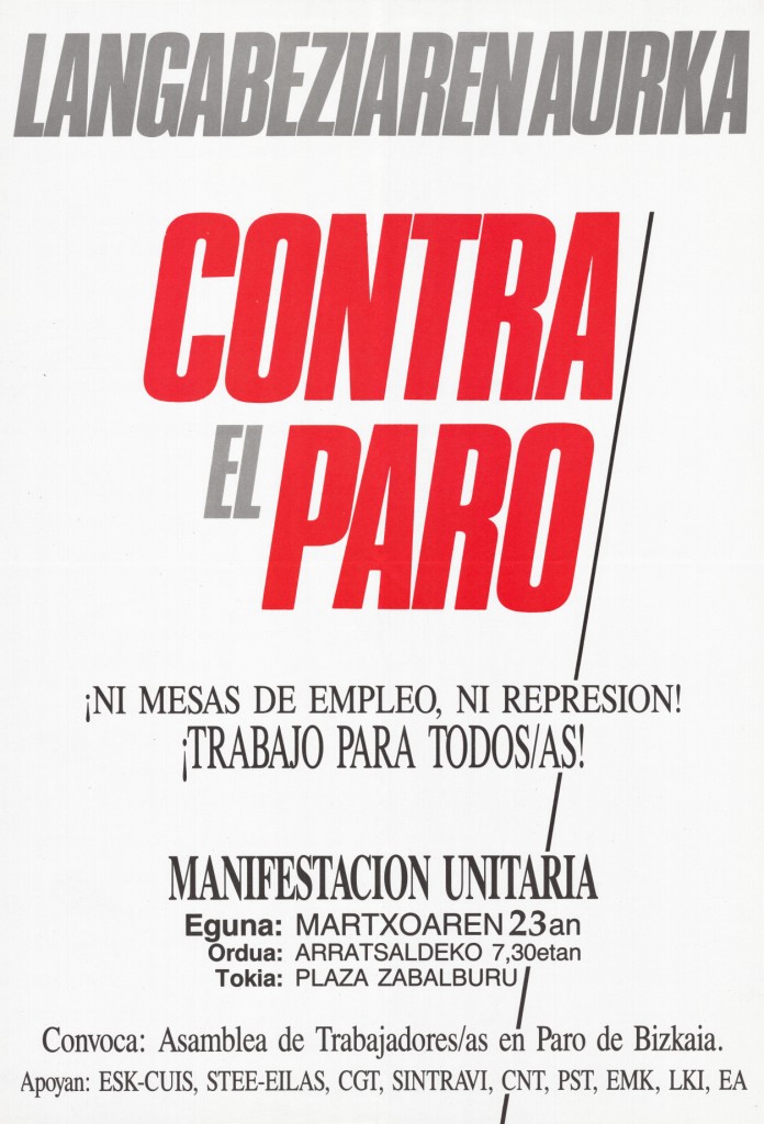 Título: Langabeziaren aurka [Material gráfico] = Contra el paro ¡trabajo para todos-as! : manifestación unitaria...