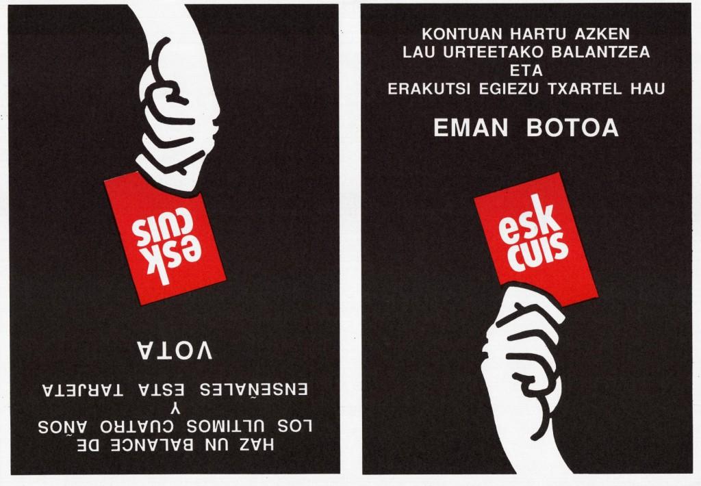 | Otros títulos: | Kontuan hartu azken lau urteetako balantzea eta erakutsi egiezu txartel hau : eman botoa |