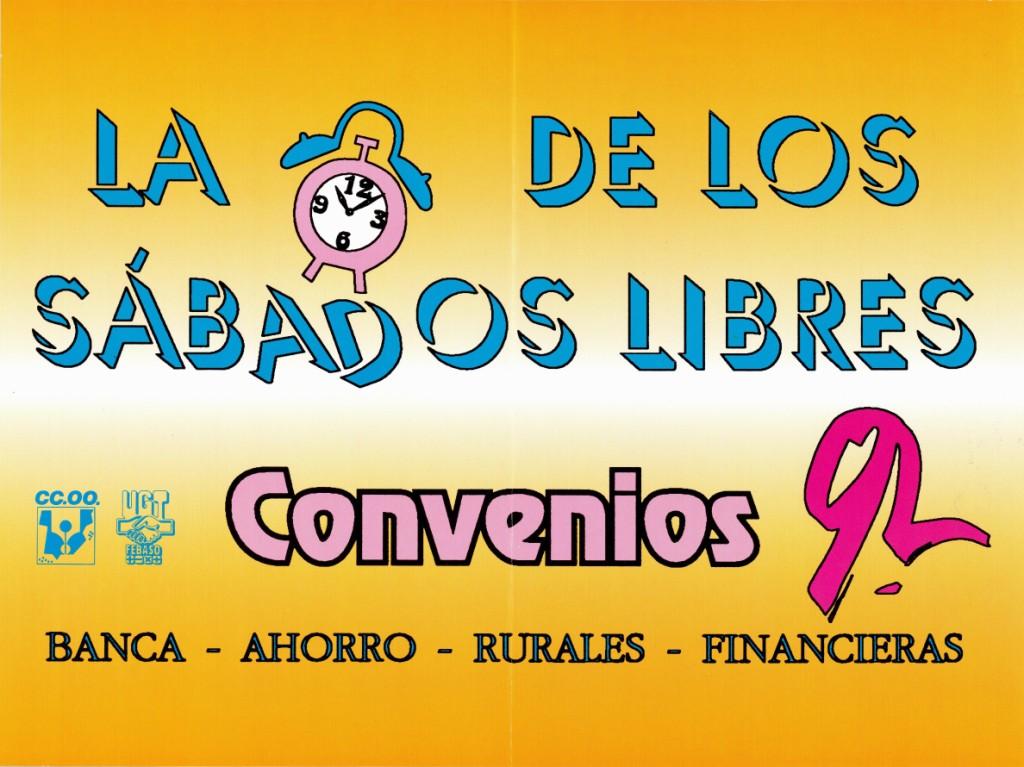 Título: La hora de los sábados libres [Material gráfico] : convenios 92 : banca-ahorro-rurales-financieras