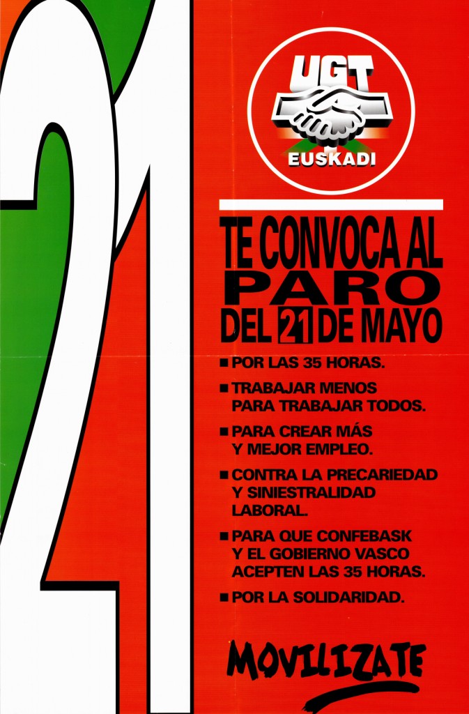 Título: UGT Euskadi te convoca al paro del 21 de mayo [Material gráfico] : por las 35 horas : trabajar menos para trabajar todos...