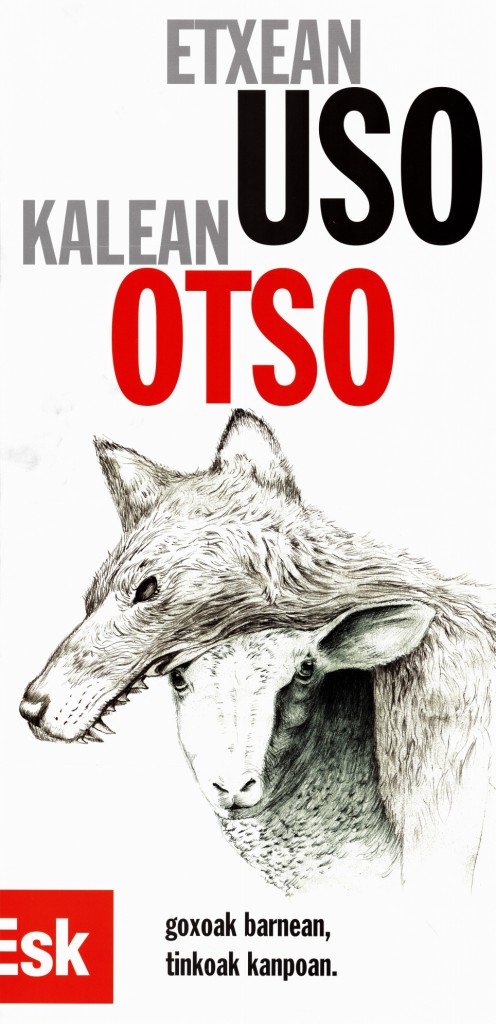 Título: Etxean uso kalean otso [Material gráfico] : goxoak barnean, tinkoak kanpoan
