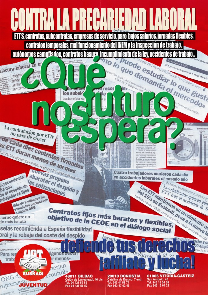 Título: Contra la precariedad laboral [Material gráfico] : ¿qué futuro nos espera? : defiende tus derechos : !afiliate y lucha!