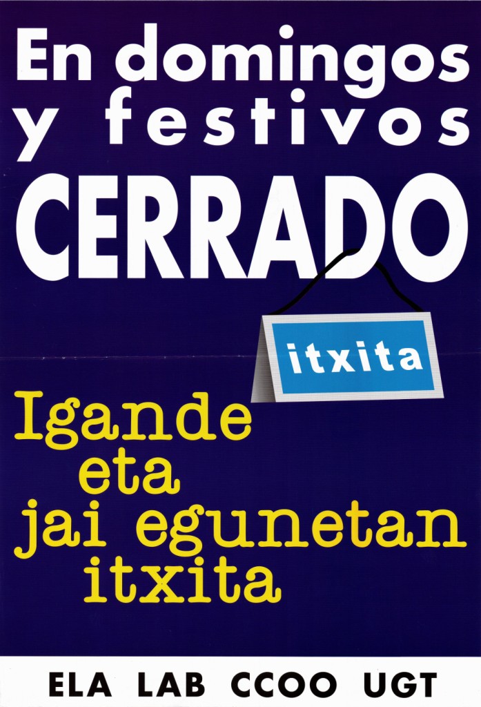 Título: En domingos y festivos cerrado [Material gráfico] = Igande eta jai egunetan itxita