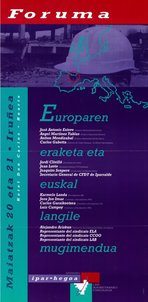 Izenburua: Foruma [Material gráfico] : Europaren eraketa eta euskal langile mugimendua