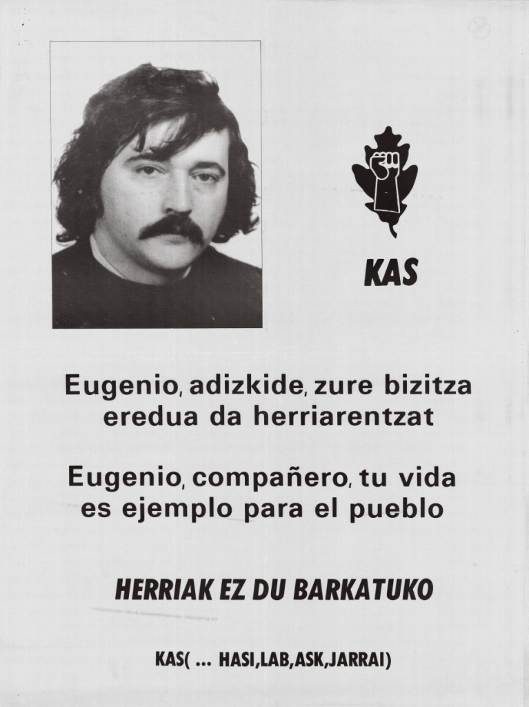 | Título: | Eugenio, adizkide, zure bizitza eredua da herriarentzat [Material gráfico] = Eugenio, compañero, tu vida es ejemplo para el pueblo : herriak ez du barkatuko : KAS (__ HASI, LAB, ASK, JARRAI) |