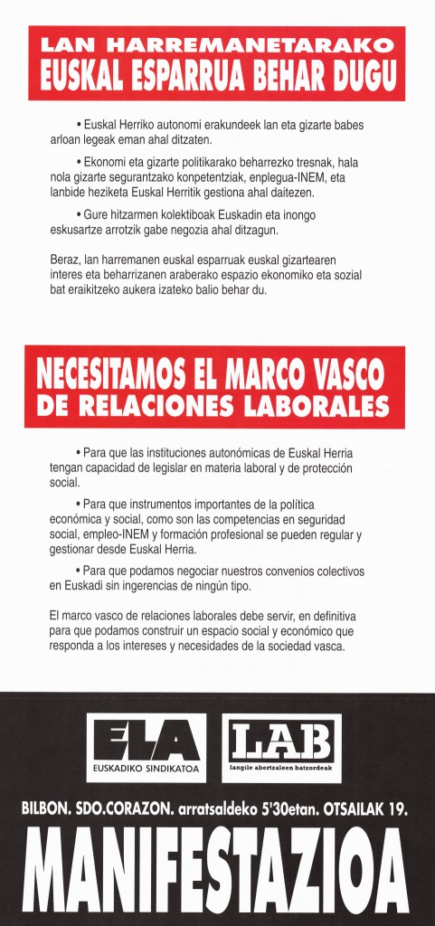 Otros títulos: Necesitamos el marco vasco de relaciones laborales : manifestazioa...