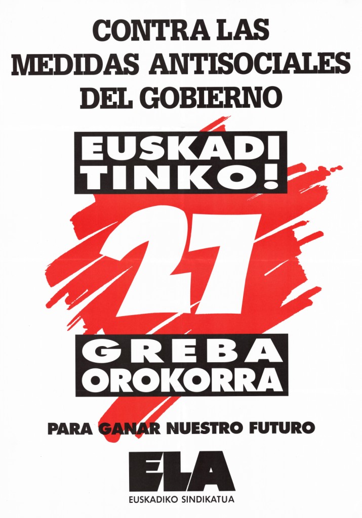 Título: Contra las medidas antisociales del gobierno [Material gráfico] : Euskadi tinko! : 27 : greba orokorra para ganar nuestro futuro
