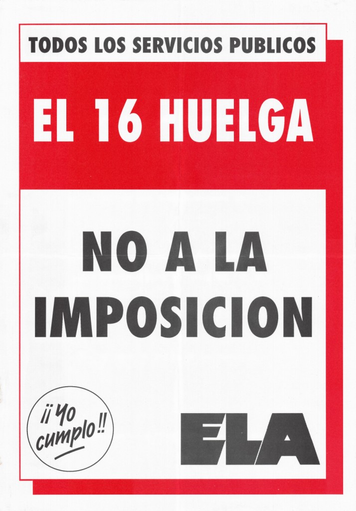 Título: Todos los servicios públicos el 16 huelga [Material gráfico] : no a la imposición : ¡¡yo cumplo!!