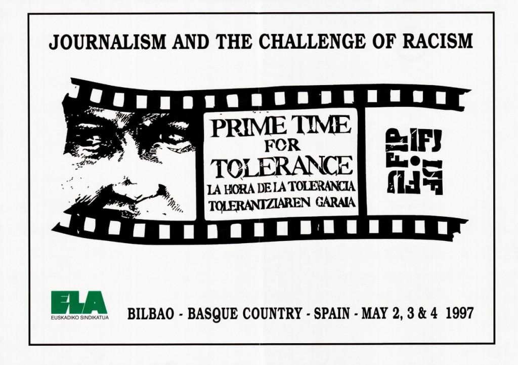 Título: Journalism and the challenge of racism [Material gráfico] : prime time for tolerance = la hora de la tolerancia = tolerantziaren garaia : Bilbao, Basque Country, Spain : may 2, 3, 4