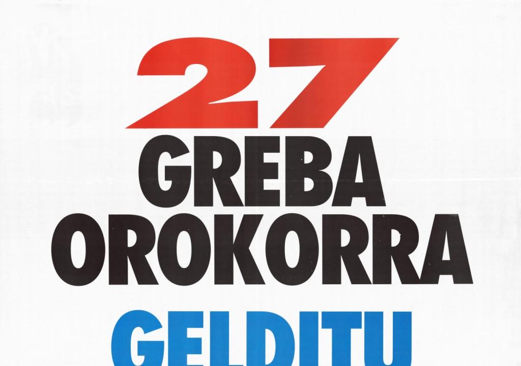 Título: 27 greba orokorra [Material gráfico] : gelditu behar zaie : asko dago jokuan