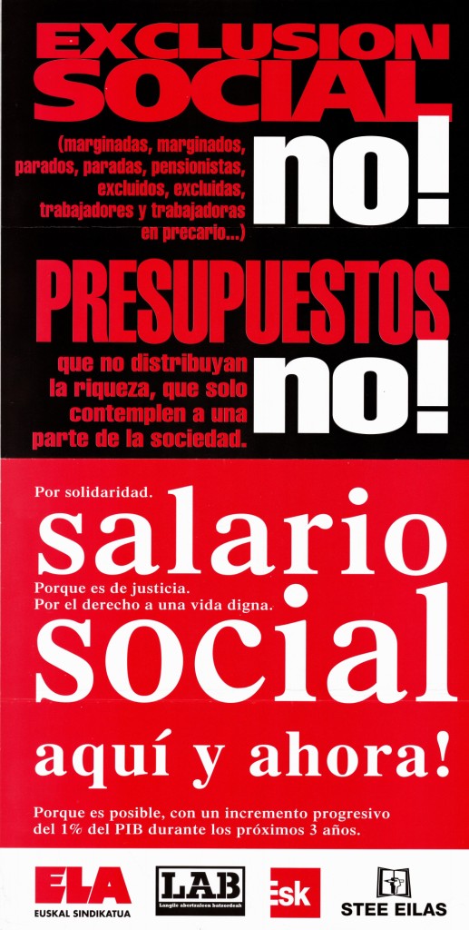 Título: Exclusión social no! [Material gráfico] : presupuestos no! : por solidaridad, salario social : aquí y ahora!...