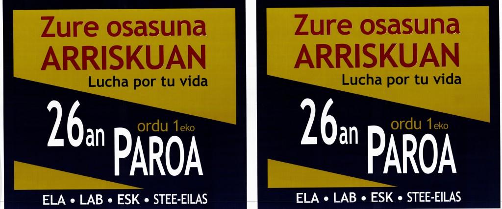 Izenburua: Zure osasuna arriskuan [Material gráfico] : lucha por tu vida : 26an ordu 1eko paroa : LAB, ESK, STEE-EILAS