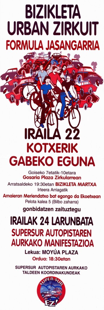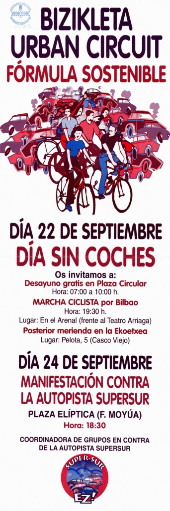 | Otros títulos: | Bizkikleta urban zirkuit formula jasangarria : iraila 22 kotxerik gabeko eguna... irailak 24 larunbata Supersur autopistaren aurkako manifestazioa... |