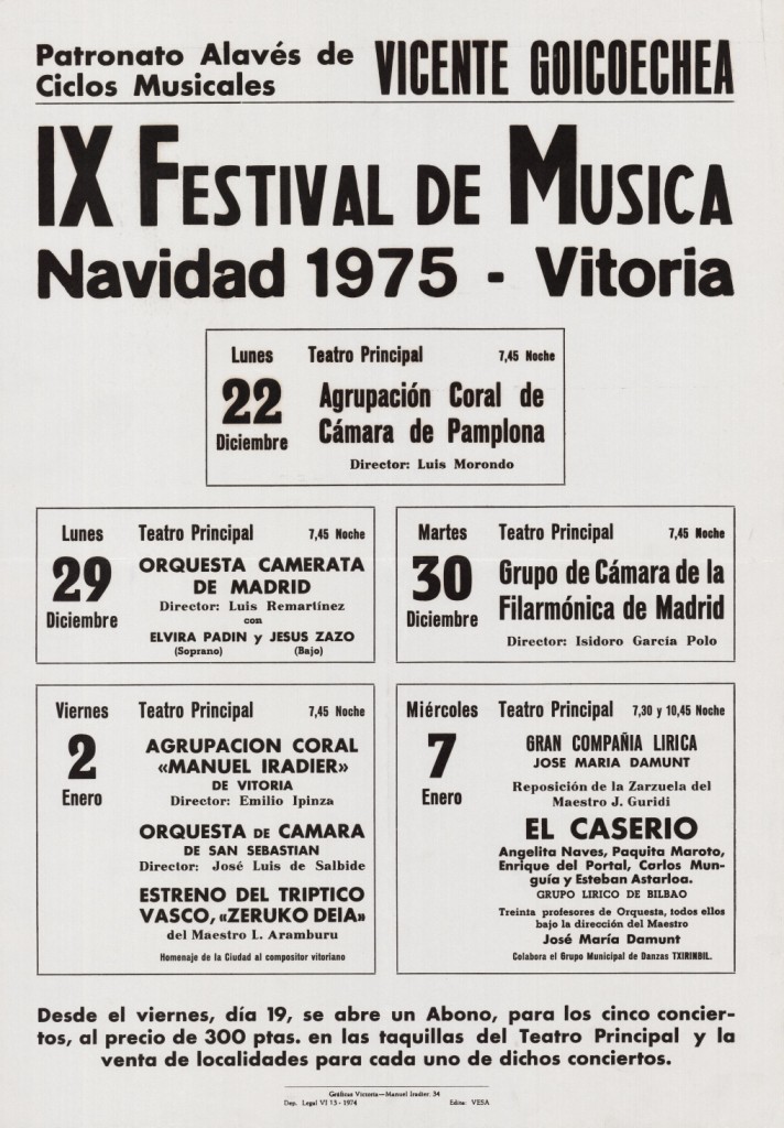 Título: IX Festival de Música [Material gráfico] : Navidad 1975 - Vitoria : Patronato Alavés de Ciclos Musicales Vicente Goicoechea