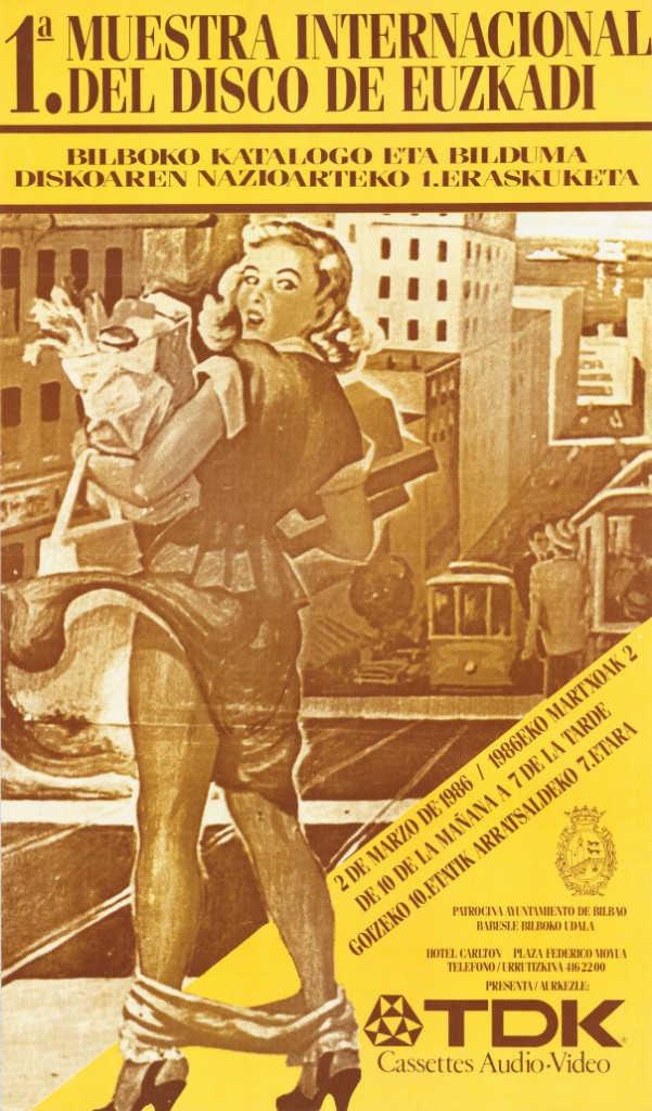 Izenburua: 1a Muestra Internacional del Disco de Euzkadi [Material gráfico] : 2 de marzo de 1986 de 10 de la mañana a 7 de la tarde : presenta-aurkezle, TDK cassettes audio-vídeo = Bilboko katalogo eta bilduma diskoren nazioarteko erakusketa : 1986ko martxoak 2 goizeko 10.etatik-arrastsaldeko 7.etara
