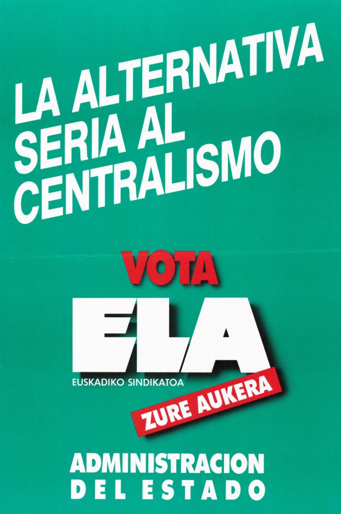 Izenburua: La alternativa sería el centralismo [Material gráfico] : Admnistración del Estado : vota : ELA Euskadiko sindikatoa : zure aukera