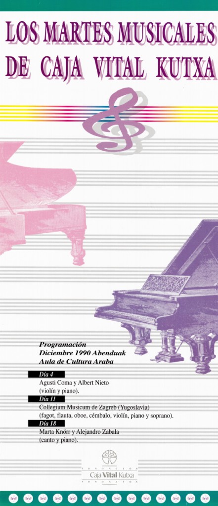 Título: Los Martes Musicales de Caja Vital Kutxa [Material gráfico] : programación diciembre 1990 abenduak : Aula de Cultura Araba