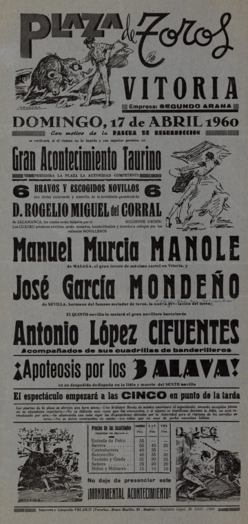 | Título: | Plaza de Toros Vitoria [Material gráfico] : domingo, 17 de abril gran acontecimiento taurino : 6 bravos y escogidos novillos 6 : Manuel Murcia Manole, José García Mondeño, Antonio López Cifuentes : ¡apoteosis : el espectaculo empezará a las cinco en punto |