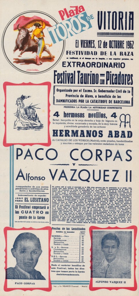 | Izenburua: | Plaza de Toros de Vitoria [Material gráfico] : Festividad de la Raza : extraordinario festival taurino con picadores organizado por el Excmo. Sr. Gobernador Civil de la Provincia de Álava, a beneficio de los damnificados por la catastrofe de Barcelona |