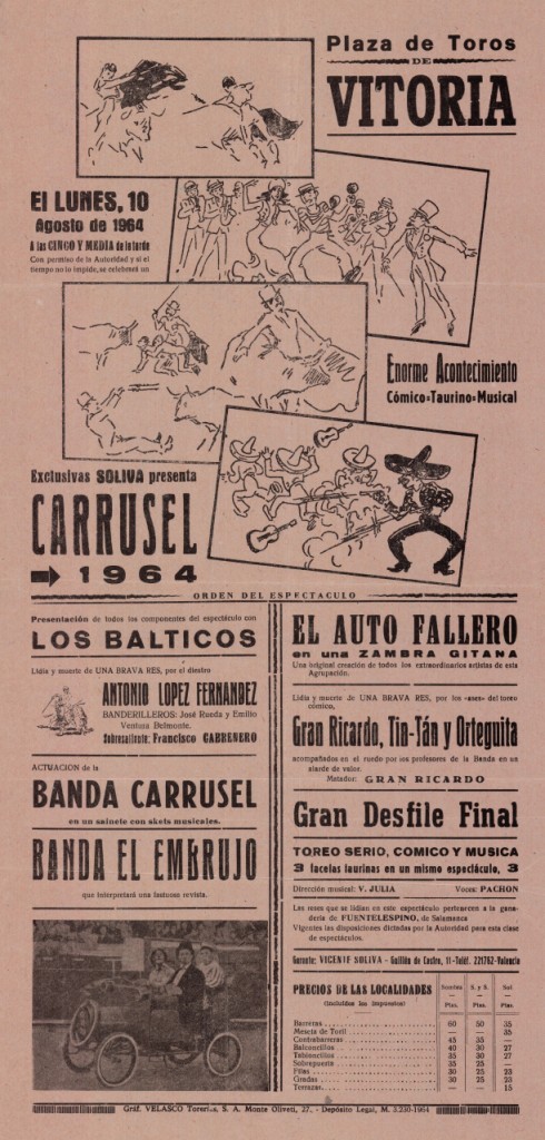 Izenburua: Plaza de Toros de Vitoria [Material gráfico] : enorme acontecimiento cómico-taurino-musical : Exclusivas Soliva presenta Carrusel 1964