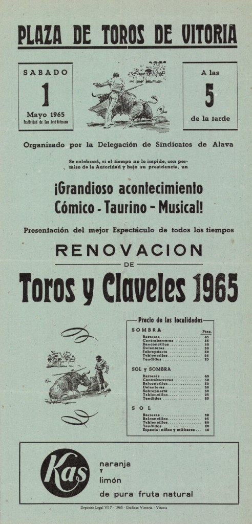 Título: Plaza de Toros de Vitoria [Material gráfico] : ¡grandioso acontecimiento cómico-taurino-musical! : presentación del mejor espectáculode todos los tiempos, Renovación de toros y Claveles 1965