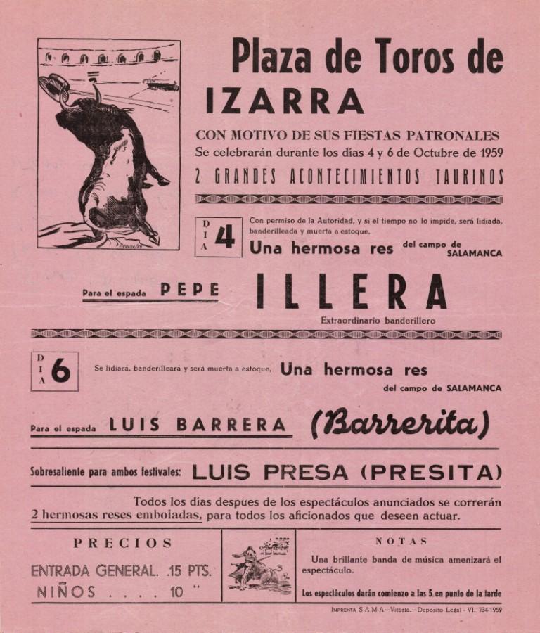 Título: Plaza de Toros de Izarra [Material gráfico] : con motivo de sus fiestas patronales ... dos grandes acontecimientos taurinos