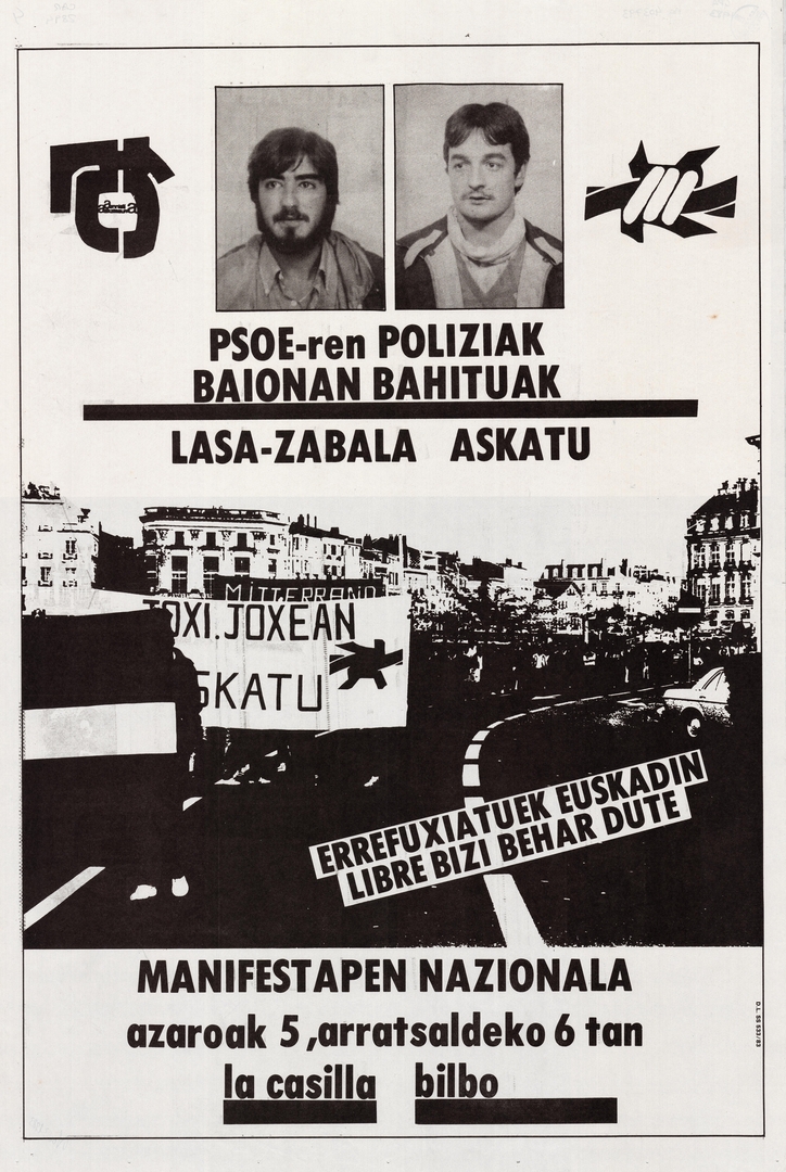 Título: PSOE-ren poliziak Baionan bahituak [Material gráfico] : Lasa-Zabala askatu : manifestapen nazionala azaroak 5 Bilbo