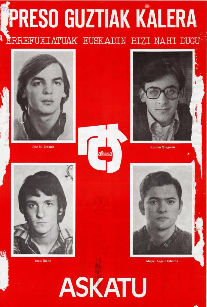 Resumen: Este texto está escrito en el verso de un cartel en el que se pide la libertad de los presos: José M. Etxaniz, Josu Murguizu, Iñaki Ibabe y Miguel Ángel Olabarria