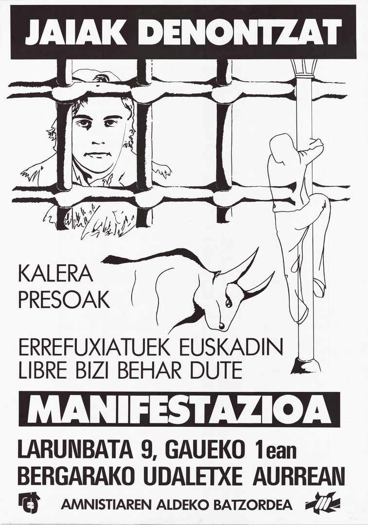 Título: Jaiak denontzat [Material gráfico] : presoak kalera : errefuxiatuek Euskadin libre bizi behar dute : manifestazioa larunbata 9 Begarako Udaletxe aurrean