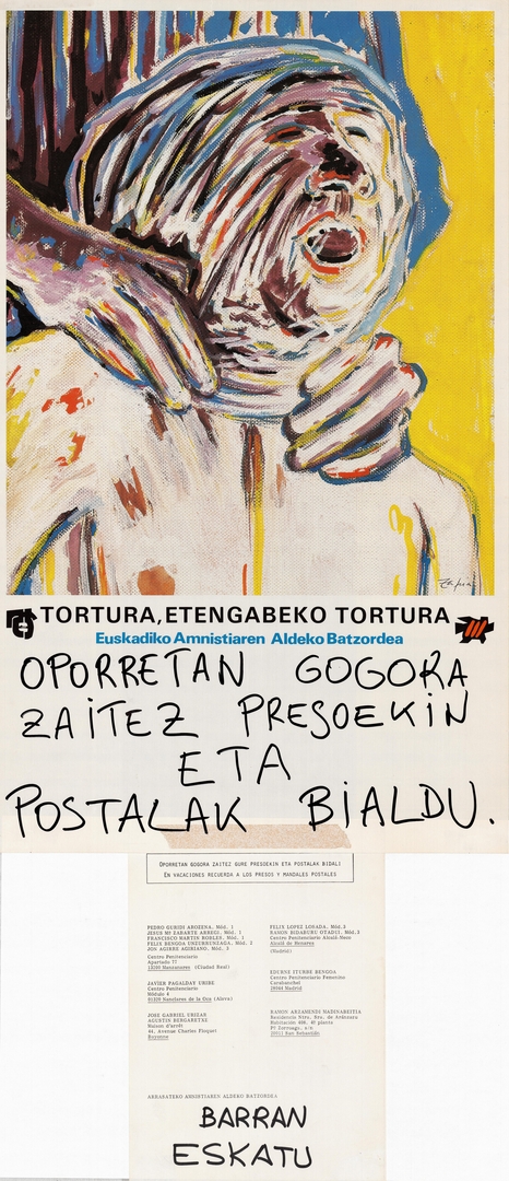 Título: Tortura, etengabeko tortura [Material gráfico] : oporretan gogora zaitez presoekin eta postalak bialdu