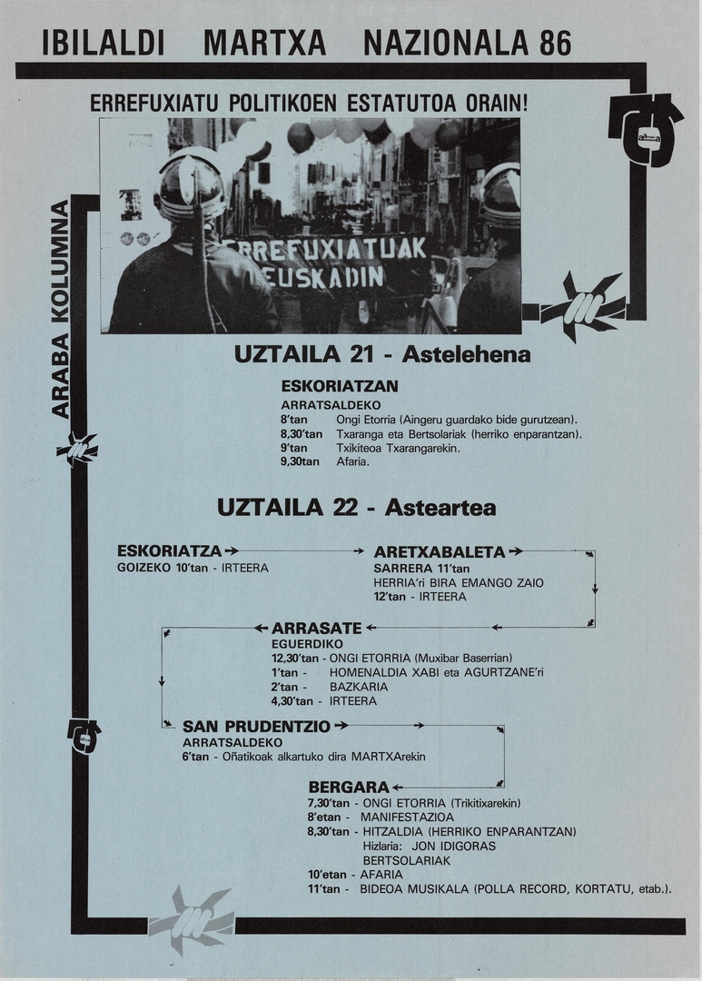 Izenburua: Ibilaldi martxa nazionala 86 errefuxiatu politikoen estatutoa orain! uztaila 21-22 [Material gráfico]