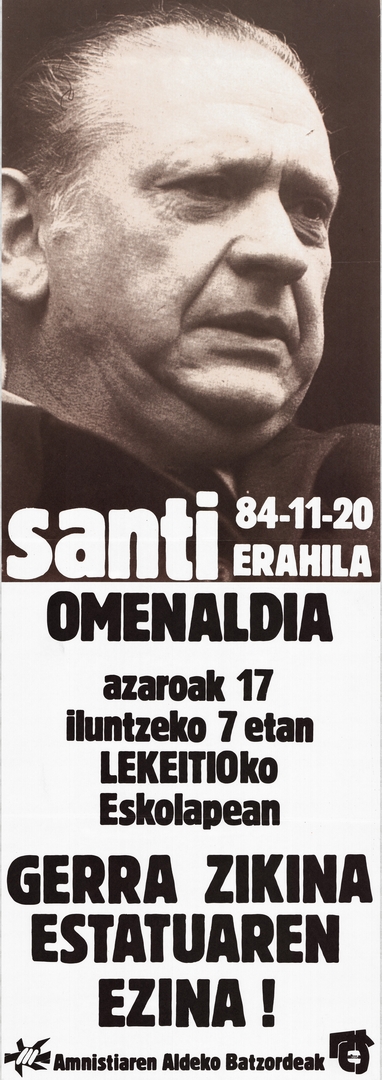 Título: Santi 84-11-20 erahila [Material gráfico] : omenaldia azaroak 17 : gerra zikina Estatuaren ezina!